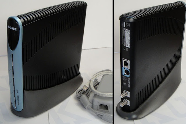 الآن بعد تركيب وحدة LNB و جهاز BUC على الصحن فسوف تحتاج إلى موديم أو راوتر مهيئ خصيصا للأنترنت الفضائي ،ويتم ربطه بالصحن أو الطبق عبر كايبل RG6 ، ووظيفة المودم هنا أنه يقوم باستقبال الموجات ثم يقوم بتحويلها إلى بيانات يقوم الحاسوب بترجمتها إلى اتصال ، وفي الصورة التالية نموذج للموديم الذي يمكنك استعماله في هذه العملية