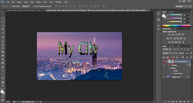 نقوم بجلب الصورة التي نريد بها ملء النص و نضعها فوق النص