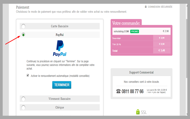 و أخيرا سوف تختار طريقة الدفع و التي هي البايبال :