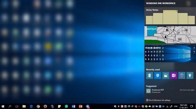 ثم بعد ذلك الضغط على خيارShow Windows Ink Workspace Button بعد ذلك يمكنك اختيار SketchPad كما في الصورة والبدء في الرسم وكتابة أفكارك.