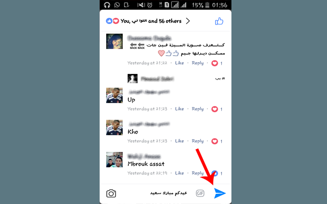 فقط ما عليك فعله لإظهار هذه الاحتفالات الجميلة في التعليق الخاص بك هو كتابة "عيد مبارك سعيد" كما في الصورة وترسل التعليق