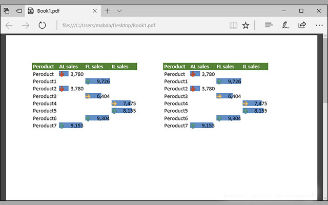 بعد القيام بهذه الخطوات تم تحويل ملف اكسيل إلى ملف PDF وتستطيع من خلال أي برنامج أن تقوم بعرض محتوى ملفات PDFويمكنك رؤية الجدول بعد إضافته للملف بسهولة، وسوف تحصل على ملف منسق مثل ما كان في برنامج اكسيل وبدون أي برنامج إضافي.
